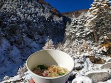 皆さん結構お疲れもモードなので、滝には降りず水だけ汲んできて上でラ