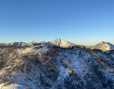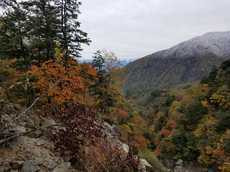 歩いていると段々明るくなると周りに山は、紅葉と新雪できれいだ(^^♪