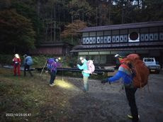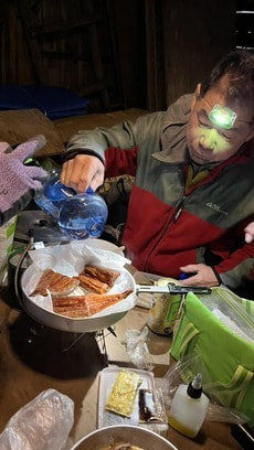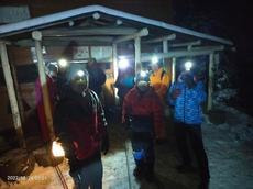 もう夕方で小屋には電気が来ていないのでみんなヘッドランプを点けて料