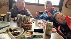 その後、またこたつの部屋に行って別の登山者3人と小屋のご主人とで飲