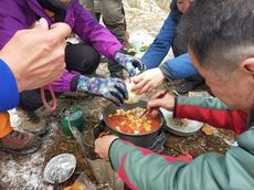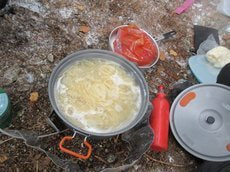 小屋に着いてさて朝ごはんにする。