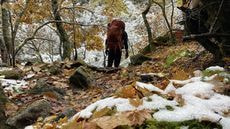 今回、滝がいっぱい有るドンドコ沢ルートだが、樹林帯の中、紅葉と新雪