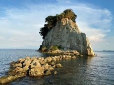 夕飯まで時間があったので、有名な?近くの見附島に歩いて行く。