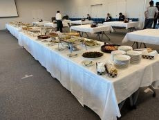 基本料理は三毛猫キッチンで作って、会場に持っていきテーブルにクロス